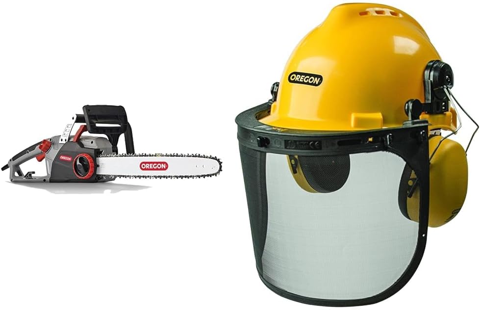• Oregon CS1500 18-inch 15 Amp Self-Sharpening Corded Electric Chainsaw, with Integrated Self-Sharpening System (PowerSharp), 2-Year Warranty, 120V, Grey, Black