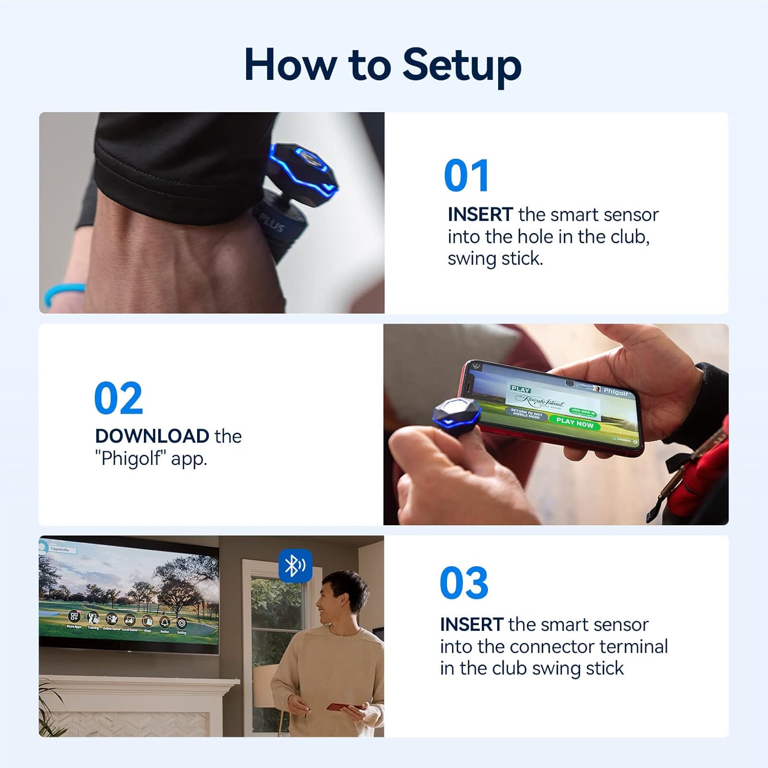 • Please consult our user manual for setup instructions. including app download and Bluetooth pairing (Watch the video below for guidance). If you encounter any setup difficulties. our Phigolf app provides troubleshooting tutorials for assistance.