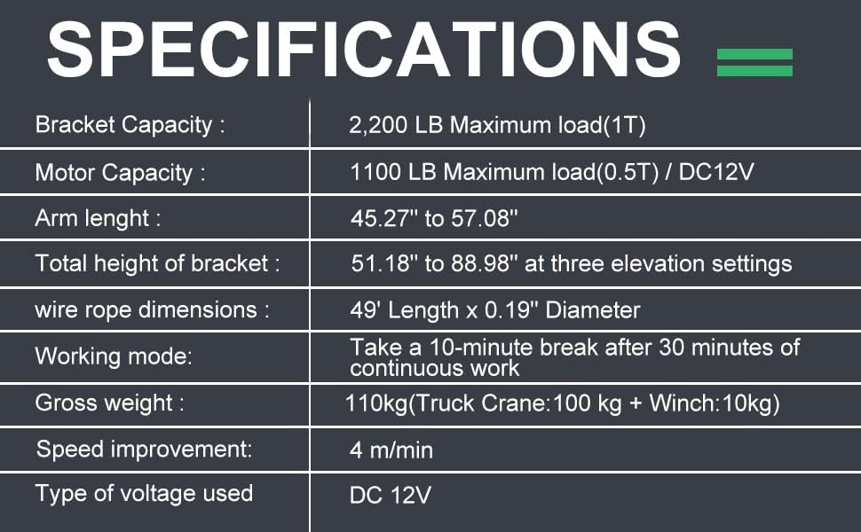 - Powerful function: Cooperate with 3500 lbs winch to easily move generators. engines. compressors and small equipment into your truck or out of your truck bed. This truck jib crane can be folded when you don't use (Delivery includes 3500 lbs electric winch kit )