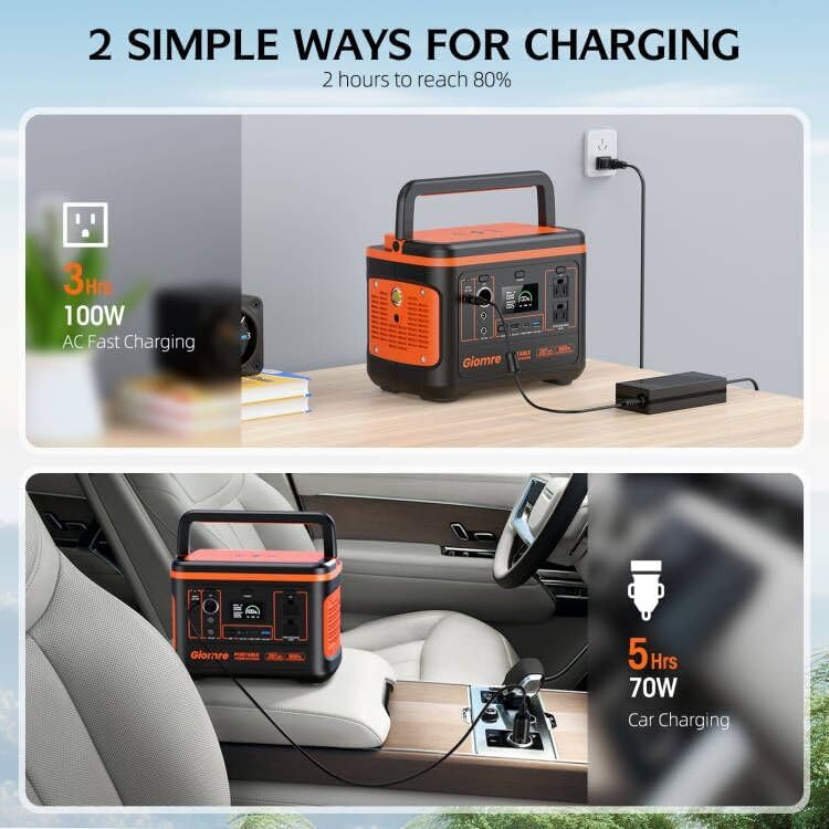 - 【POWERFUL PERFORMANCE】The Giomre Portable Power Station is powered by a durable lithium-ion battery that ensures reliable performance even after 800 cycles. With 297Wh of energy and a powerful 600W AC output. you can energized anytime.