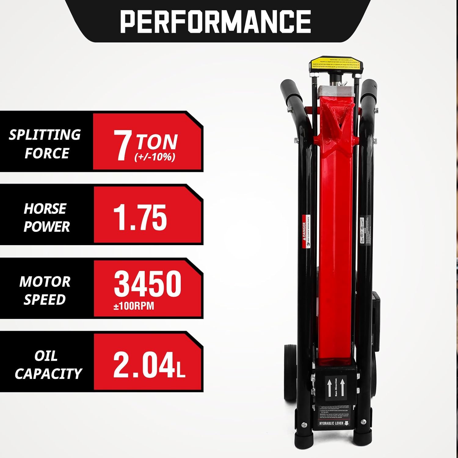 - 【POWERFUL MOTOR FOR EFFORTLESS CUTTING】 The PowerSmart electric hydraulic log splitter boasts a 15 Amp induction motor with 3500 rpm. ensuring stable performance. The 7-ton hydraulic system easily splits larger logs into firewood. Durable steel construction ensures reliable use for years to come.