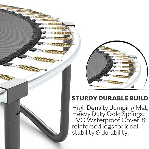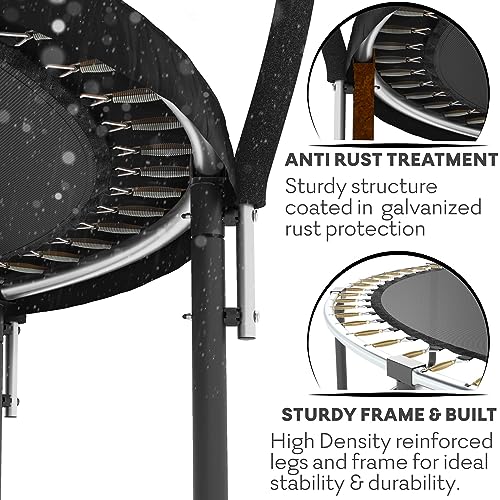 - �� Kids just wanna have fun - for a LONG time! �� We want your Jumpzylla super trampoline to look good as new for as long as possible! The frame is galvanized inside-out. and the legs are powder coated for extra protection against rust. the thick foam is waterproof. so your new trampoline has a longer product life. And because we want to go the extra mile. we added the luxury plastic covered ladder for easy access and a comfortable use of your in kids trampoline for toddlers and older kids.