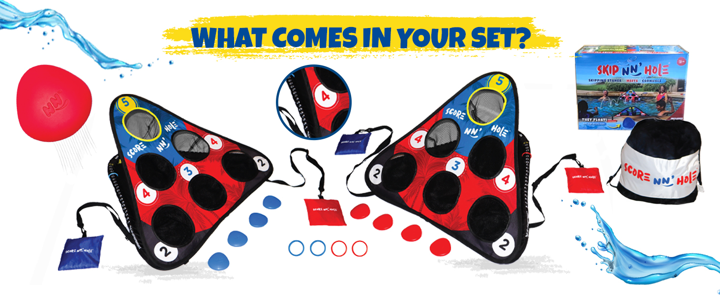 • SKIP NN' HOLE Fun Pool Game for Adults and Family | Stonne Skipping Meets Swimming Pool Cornhole Game Floating | Fun For All Ages, Easy Setup, Well Made | Portable Water and Lake Toy |