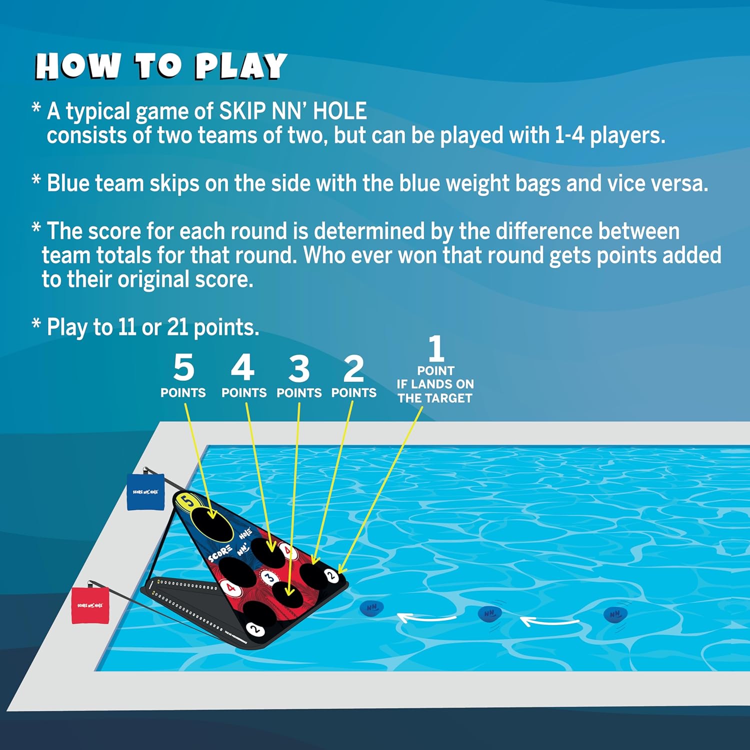 • SKIP NN' HOLE IS FUNN' FOR ALL AGES: Perfect for everyone to play together in the pool. Easy to set up. well made. portable. and worth the money for the hours of family fun competitions.