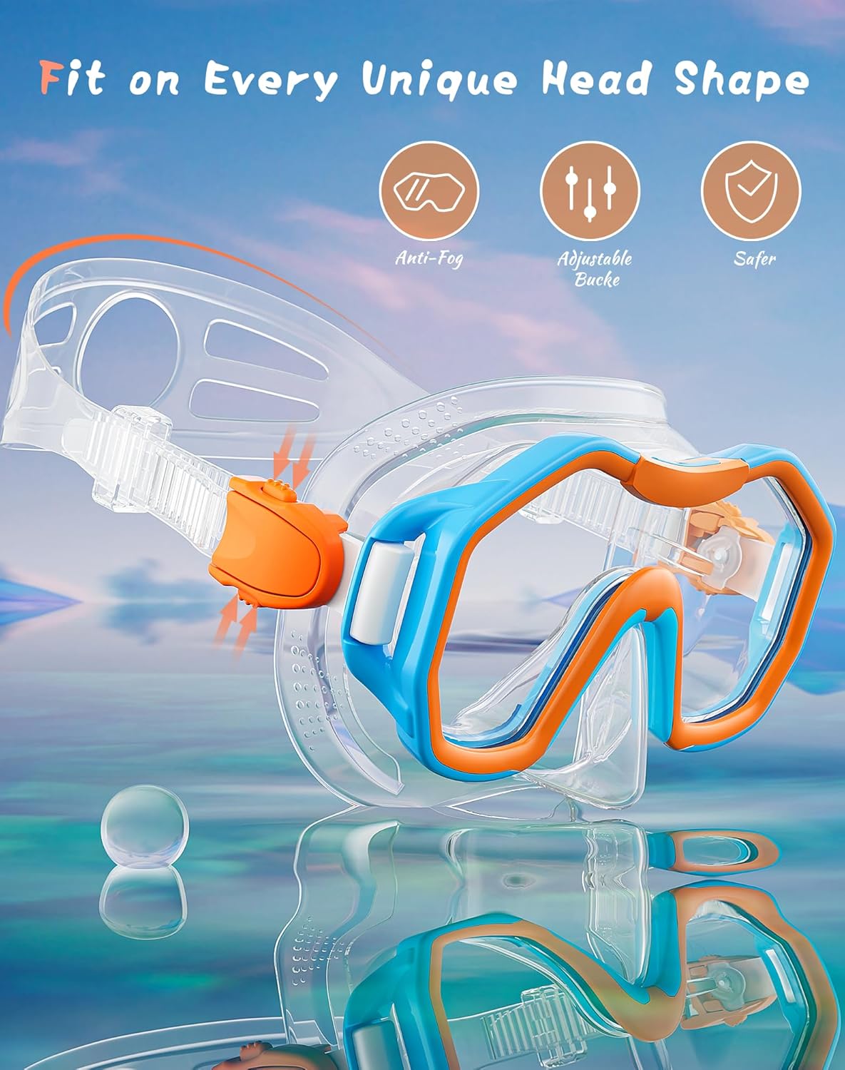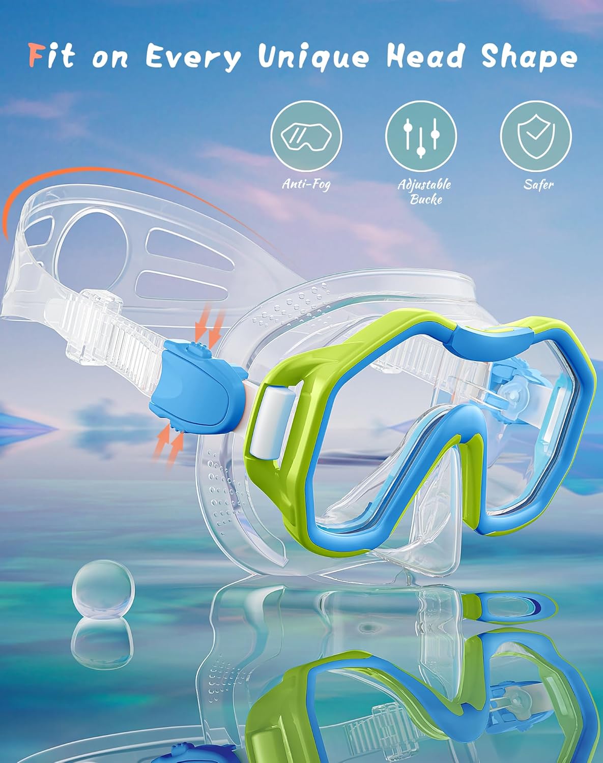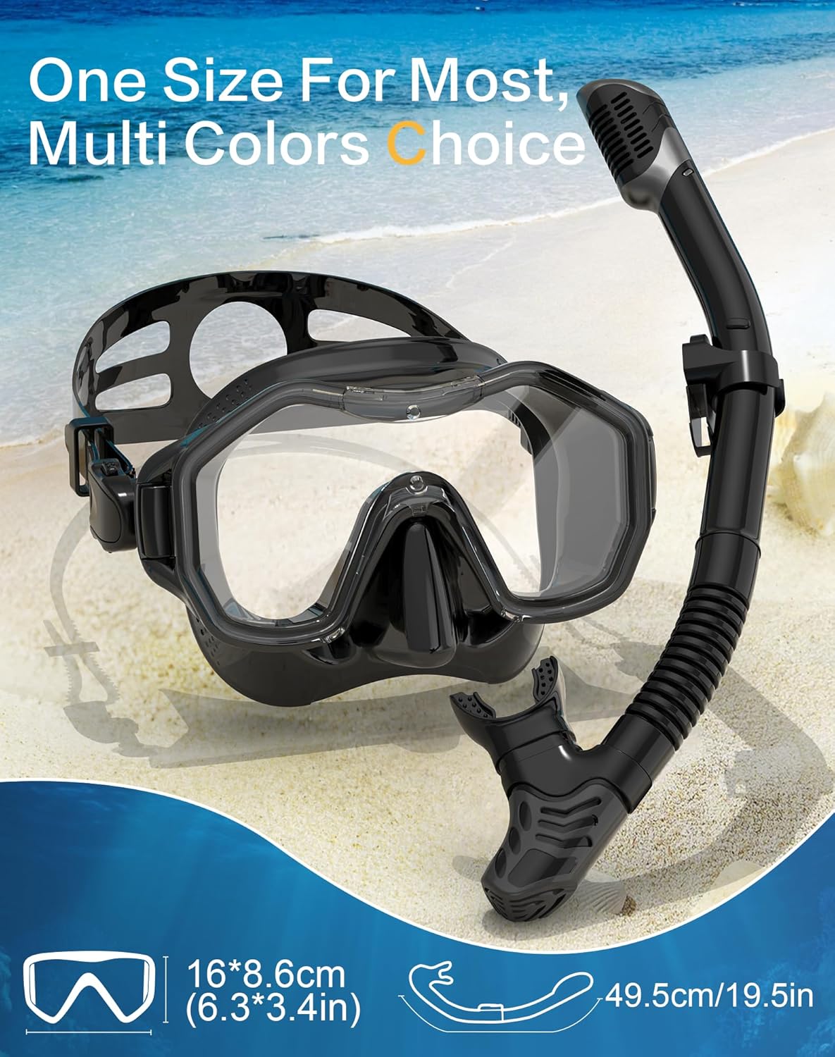 - ��Anti-Fog Lenses Provide Clear Vision��The scuba mask and snorkel mirrors are equipped with anti-fog film to avoid fogging inside the lens when the nose exhales. Now you can enjoy all the underwater scenery clearly.
