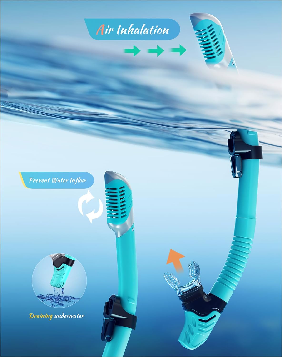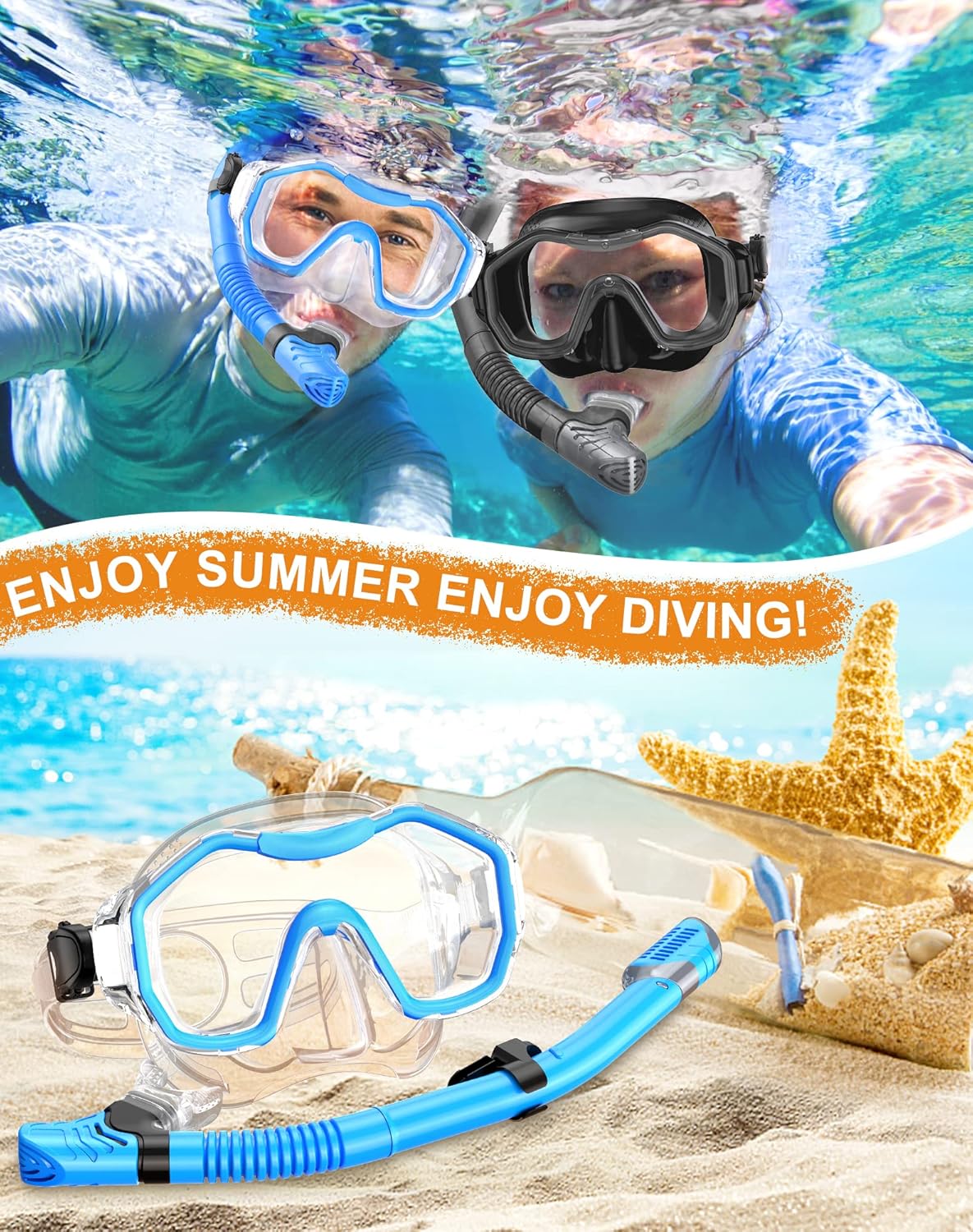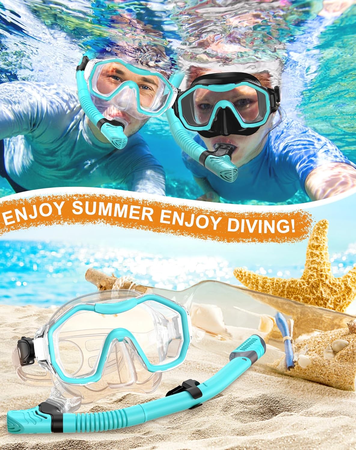 - ��Food Grade Material is Safe and Non-Toxic��The diving snorkeling set and its mouthpiece are made of food-grade high-quality silicone. non-toxic and odorless. unisex and safe for children.