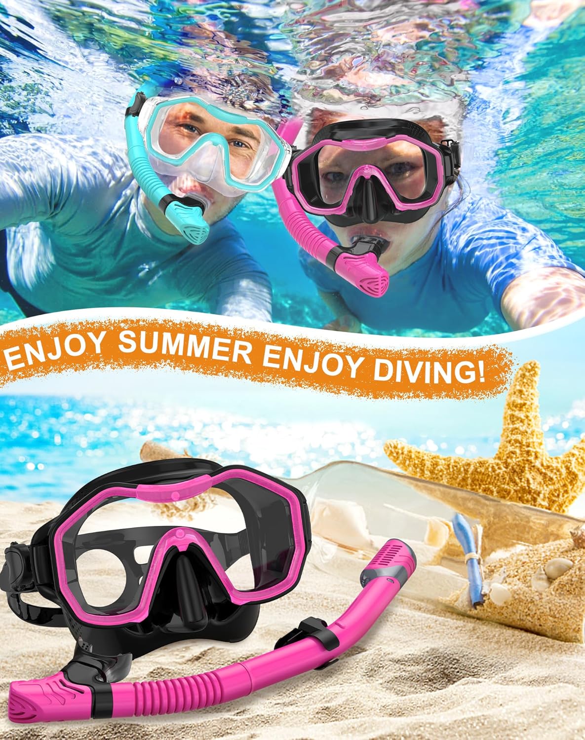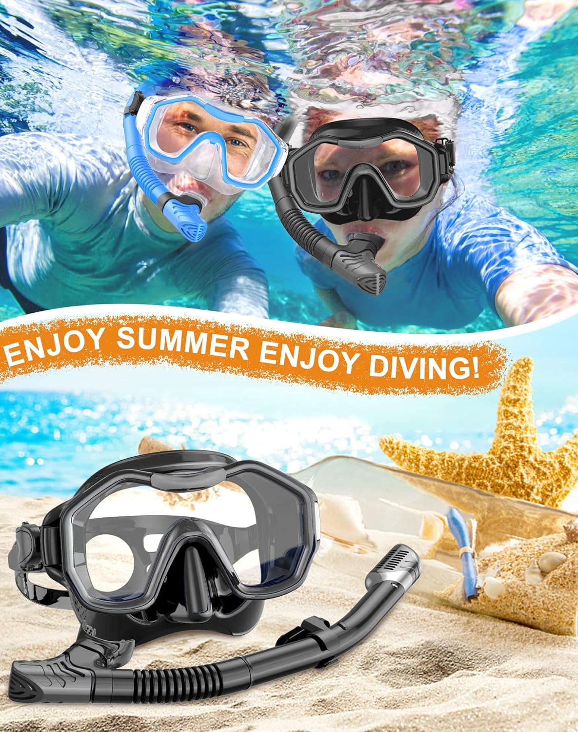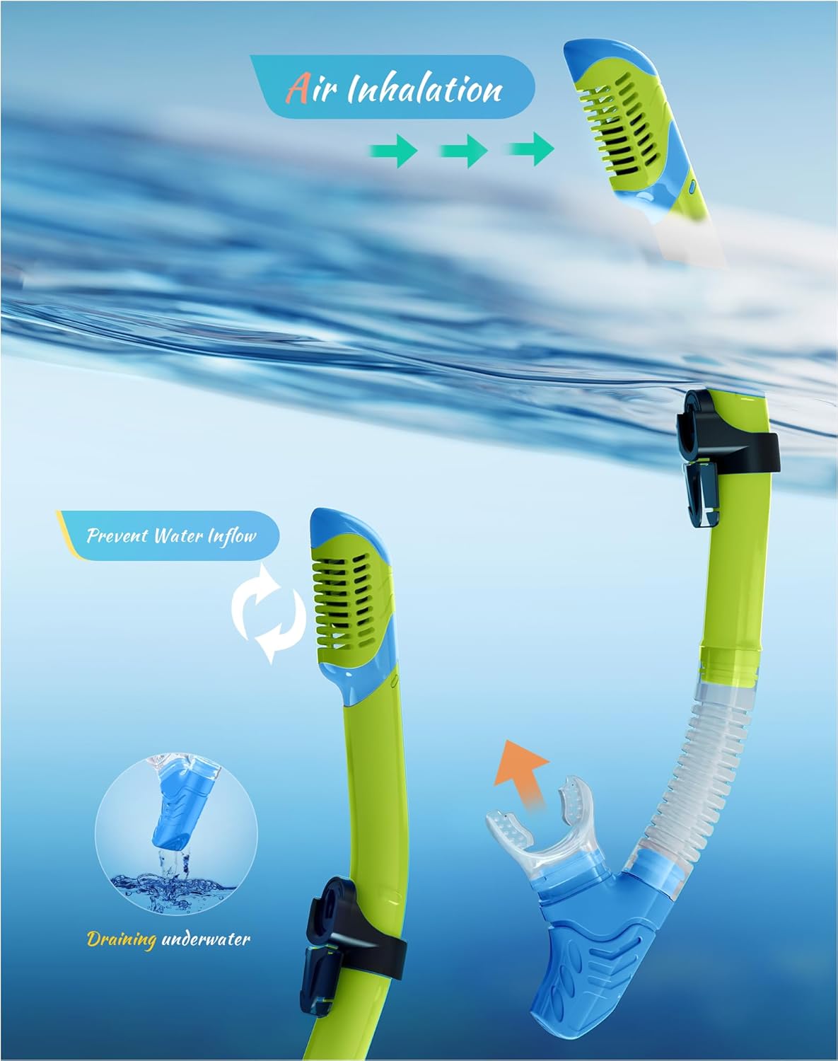 - ��Food Grade Material is Safe and Non-Toxic��The diving snorkeling set and its mouthpiece are made of food-grade high-quality silicone. non-toxic and odorless. unisex and safe for children.