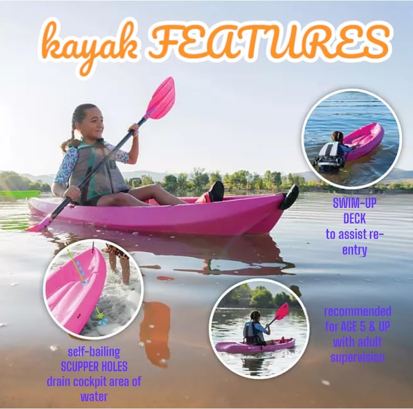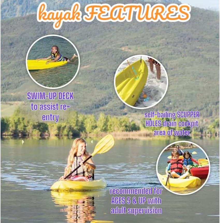 • **Durable Construction:** Made from high-density polyethylene (HDPE). this kayak is UV-protected and resistant to fading. cracking. or peeling. ensuring many summers of fun.