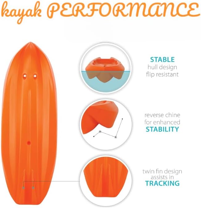• **Lightweight Design:** Weighing just 18 lbs. this kayak is light enough for kids to handle with ease. The twin fin design aids in tracking and surf riding. enhancing the overall experience.
