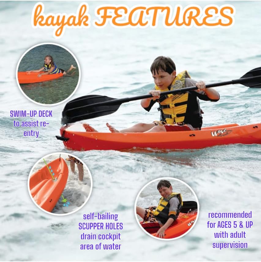 • The Wave 6' Youth Kayak with Paddle. Designed for Stability and Safety, It's The Perfect Choice for Young Paddlers Ready to Conquer The Water