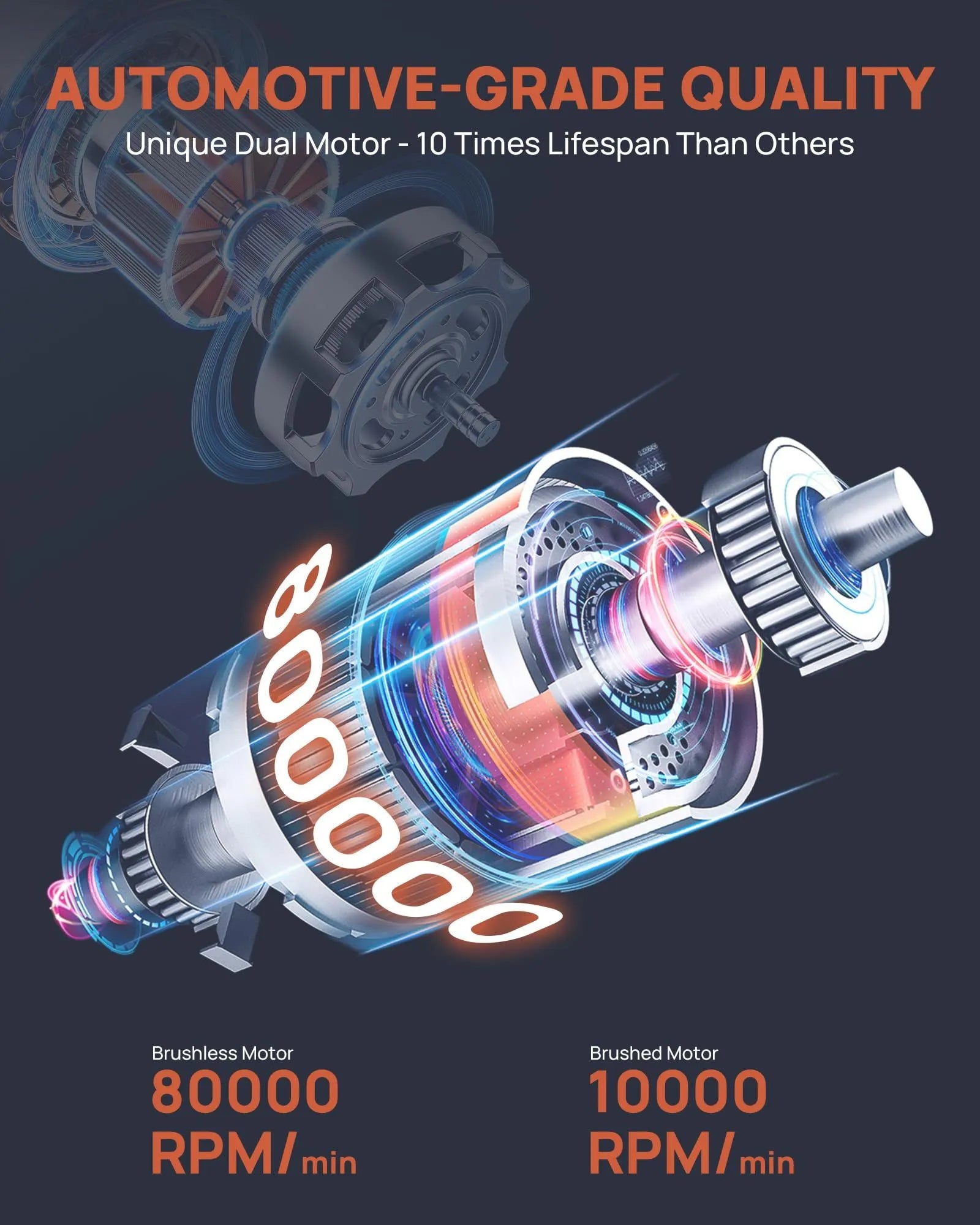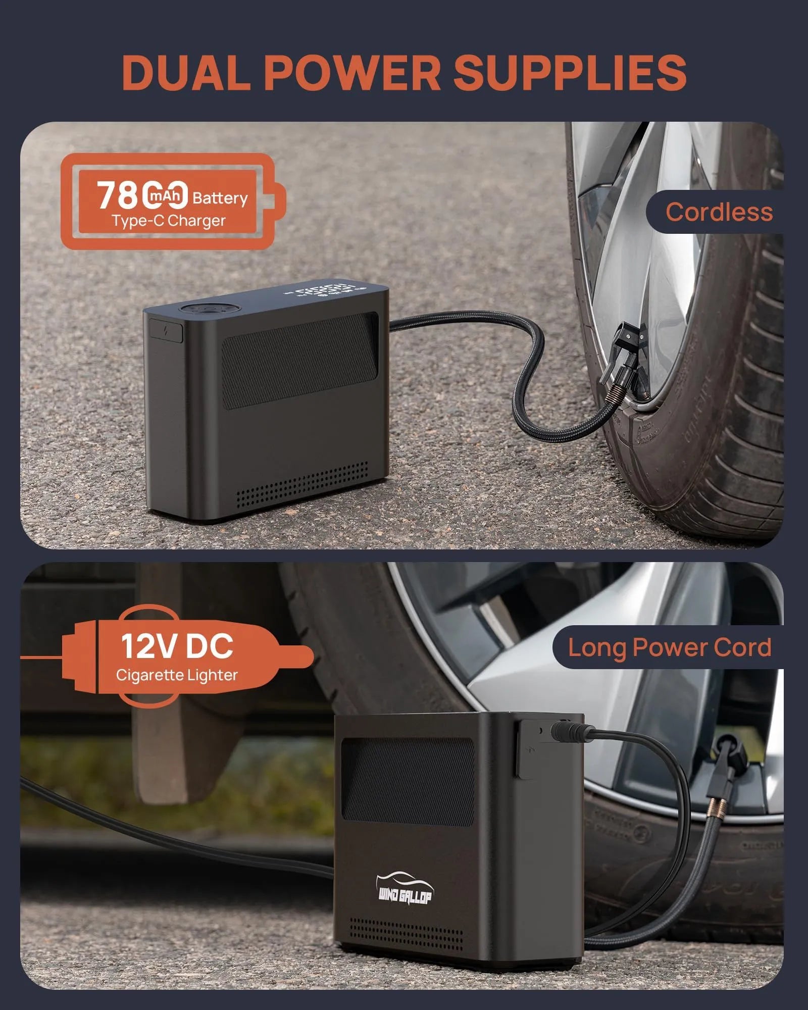 - High-Performance Portable Air Pump: Equipped with a 120W high-power motor. reaching up to 80.000 RPM and a wide 0-150 PSI pressure range. Dual motor design (brushless + brushed) ensures this tire pump for car portable a lifespan 98% longer than comparable models. Efficient. fast. and reliable��latest 2301 portable air compressor for car tires is your ideal inflation companion.