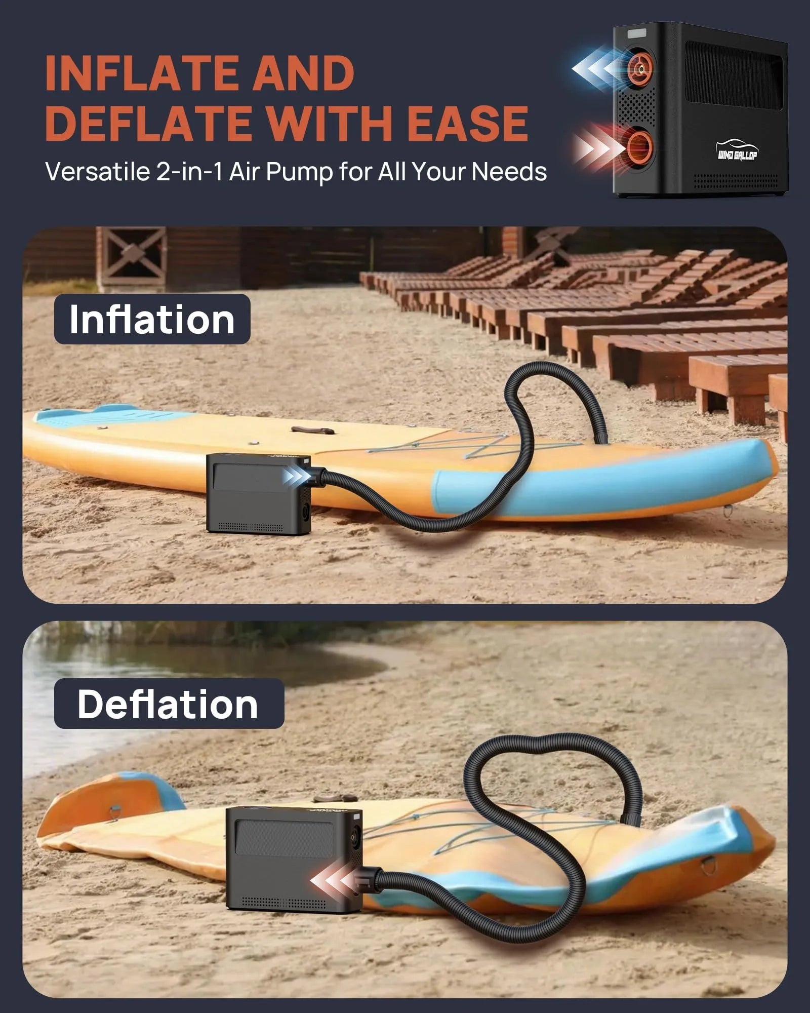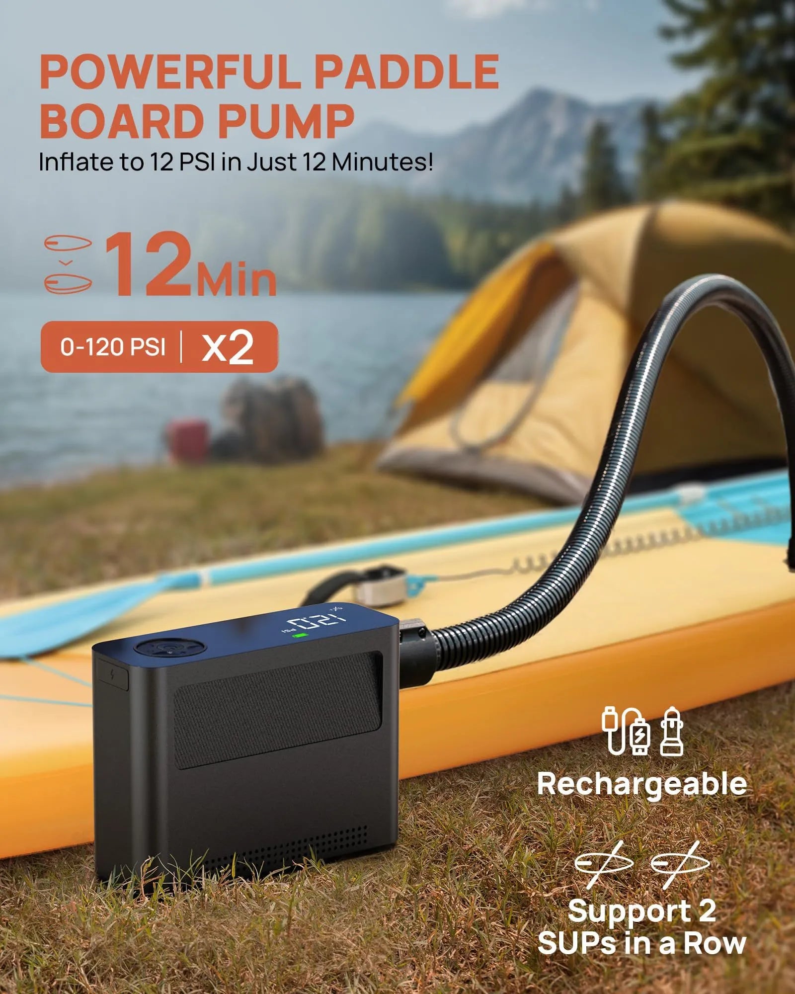 - 3X Faster Inflation & Deflation: Featuring a powerful 400L/min air flow. this portable air compressor inflates quickly. It inflates car tires from 29-36 PSI in just 1 minute (as car tire air pump portable). paddleboards from 0-12 PSI in 12 minutes (as SUP pump). and bike tires from 0-120 PSI in 1 minute(as bike tire pump). Perfect for cars. trucks. SUVs. motorcycles. bikes. balls. paddleboards. tents. kayaks. air beds. and more. Enjoy a smooth. hassle-free journey every time!