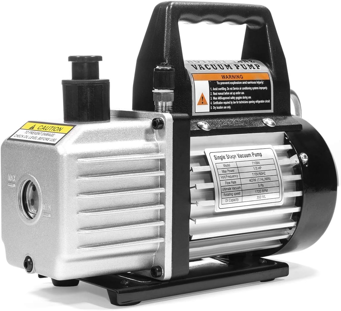 • SIMPLE BUT POWERFUL: XtremepowerUS 1/3 HP 4 CFM 1-Stage Rotary Air Vacuum Pump is designed to have high efficiency and low noise output with internal high volume cooling fan for extended use