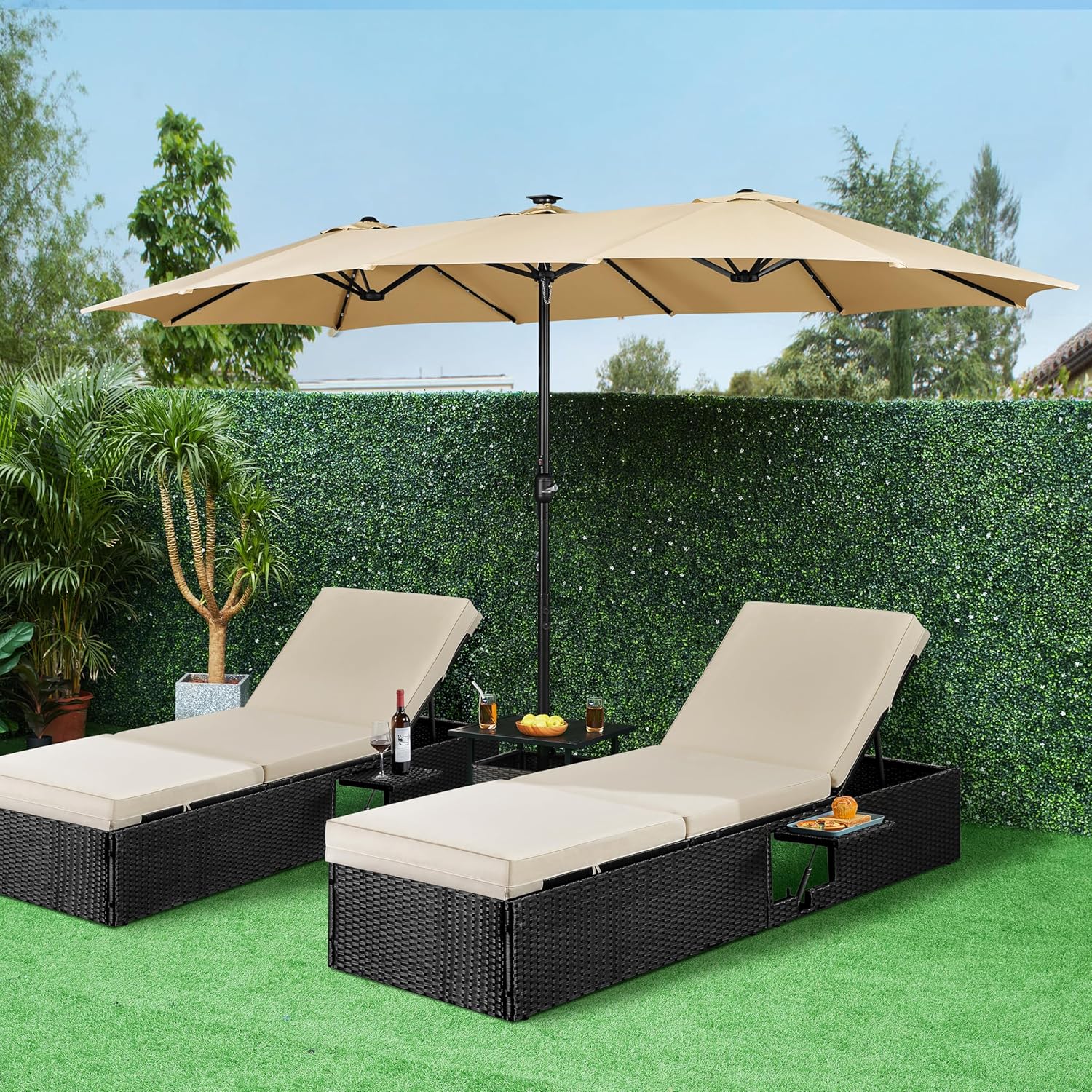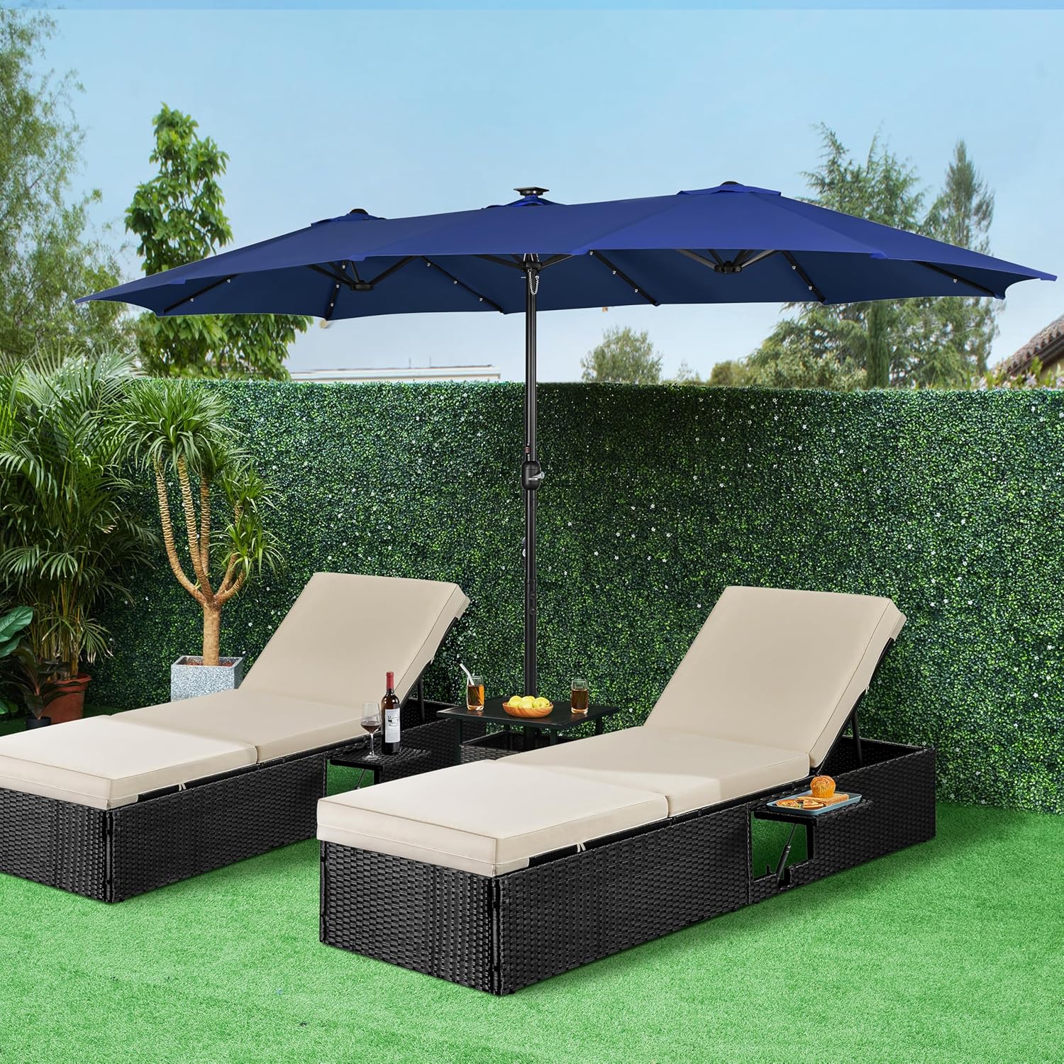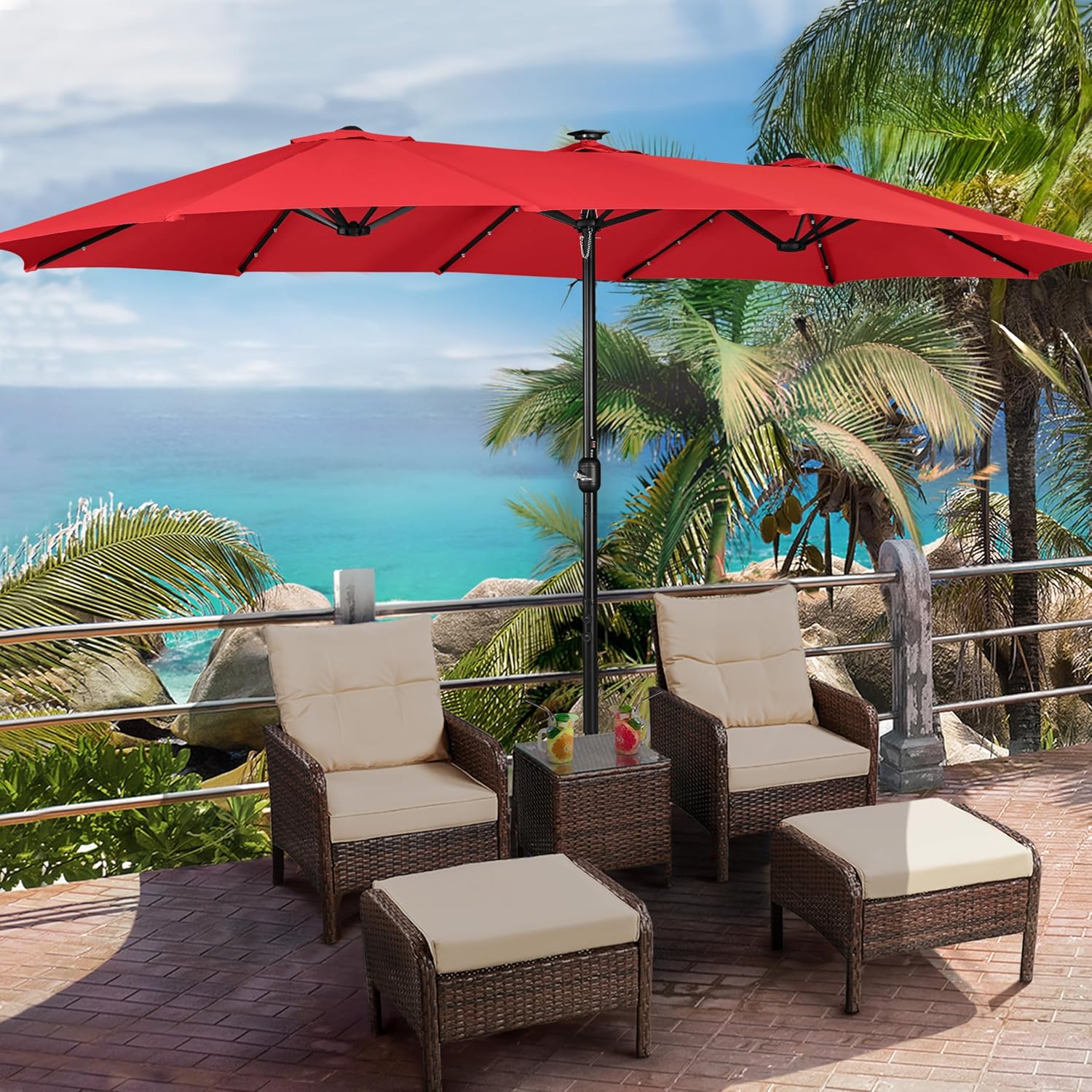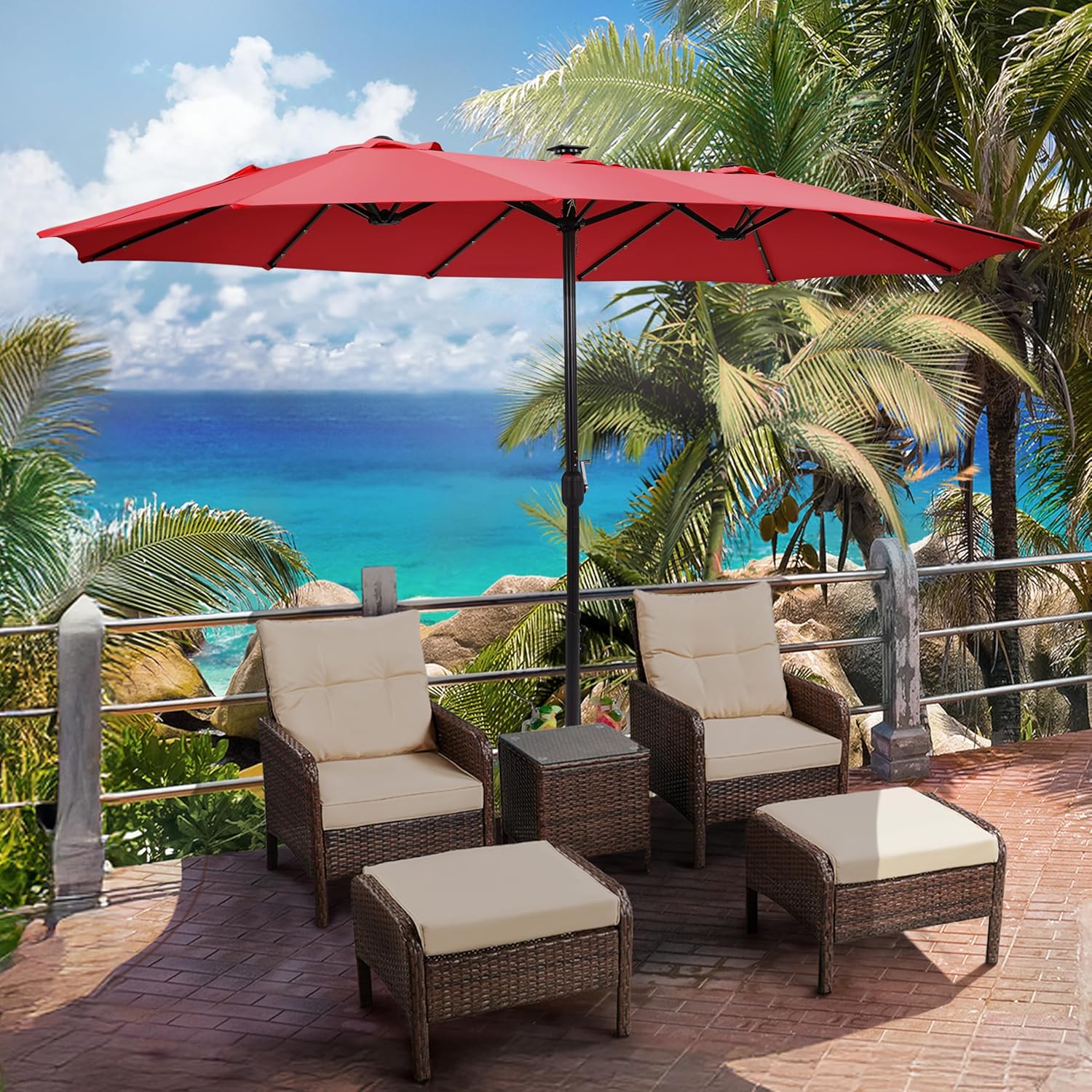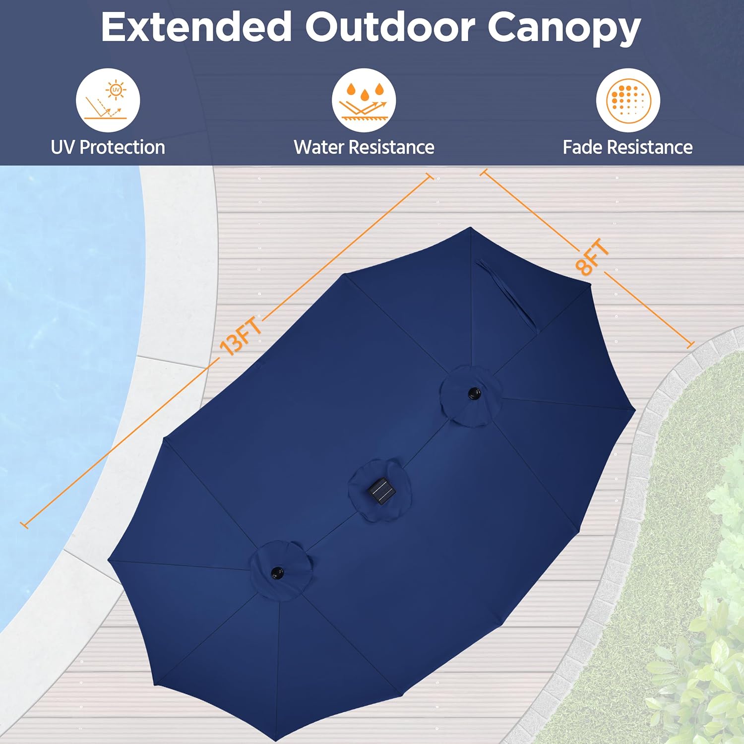 • 15 ft Large Patio Umbrella with Solar Lights Double-Sided Outdoor Rectangle Market Umbrellas with 36 LED Lights/Base Included/Easy Crank for Patio Garden Yard Pool Lawn, Brown
