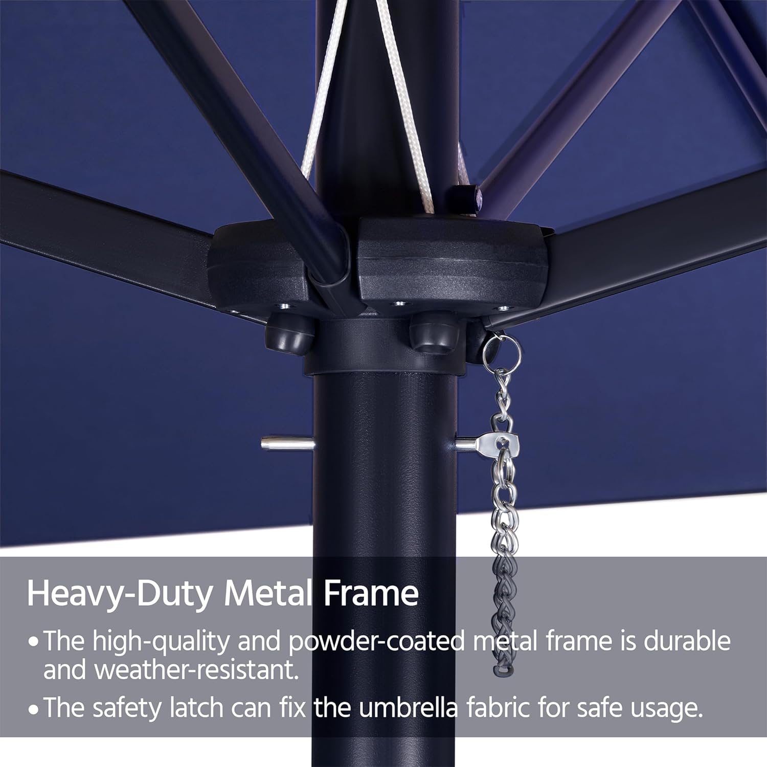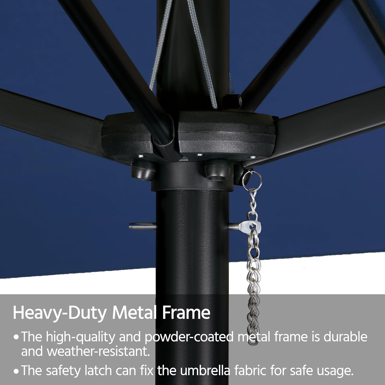• Heavy-Duty Iron: This patio parasol is supported by 12 robust. heavy-duty main ribs and a durable diameter center pole. Built to withstand the elements. this strong iron frame ensures long-lasting stability and reliable support for years of use