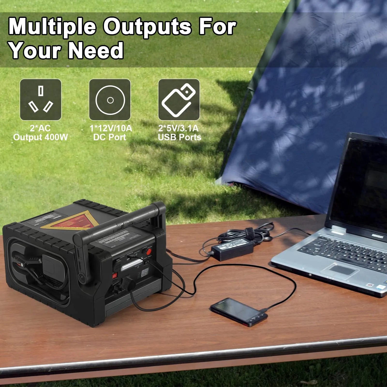 - u25b2Powerful 22000mAh Capacity -- Car battery starter with AC/ DC/ USB Outlet -- 2 x AC Outlets by connecting to 110V/100W. it can efficiently power up your laptops. speakers. and any other household appliances. Use the 2 x 5V USB outputs. and 12V DC outputs backup power supply is perfect for mobile phones. tablets. cameras. car refrigerators. car vacuum cleaners. fans. and more.