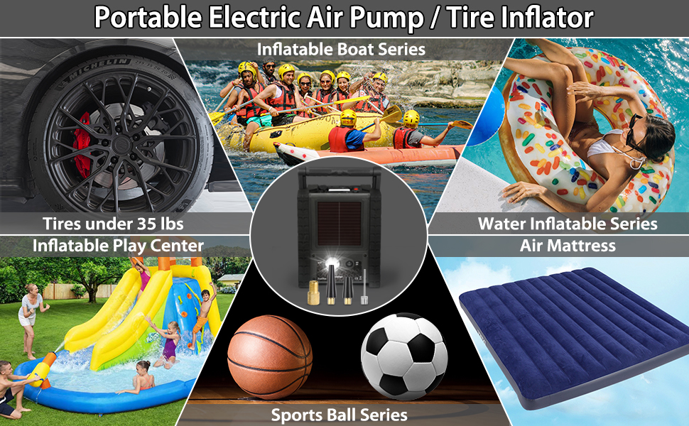 - u25b2Jump Starter with Air Compressor -- ZunDian jump starter built-in Air compressor pump (35 L/Min. 260 PSI) with a digital LCD that reads the current tire pressure. taking only 5 mins fully pump. Also comes with 3 adapters valves for your bikes. cars. balls. pool toys. and other Inflatables.