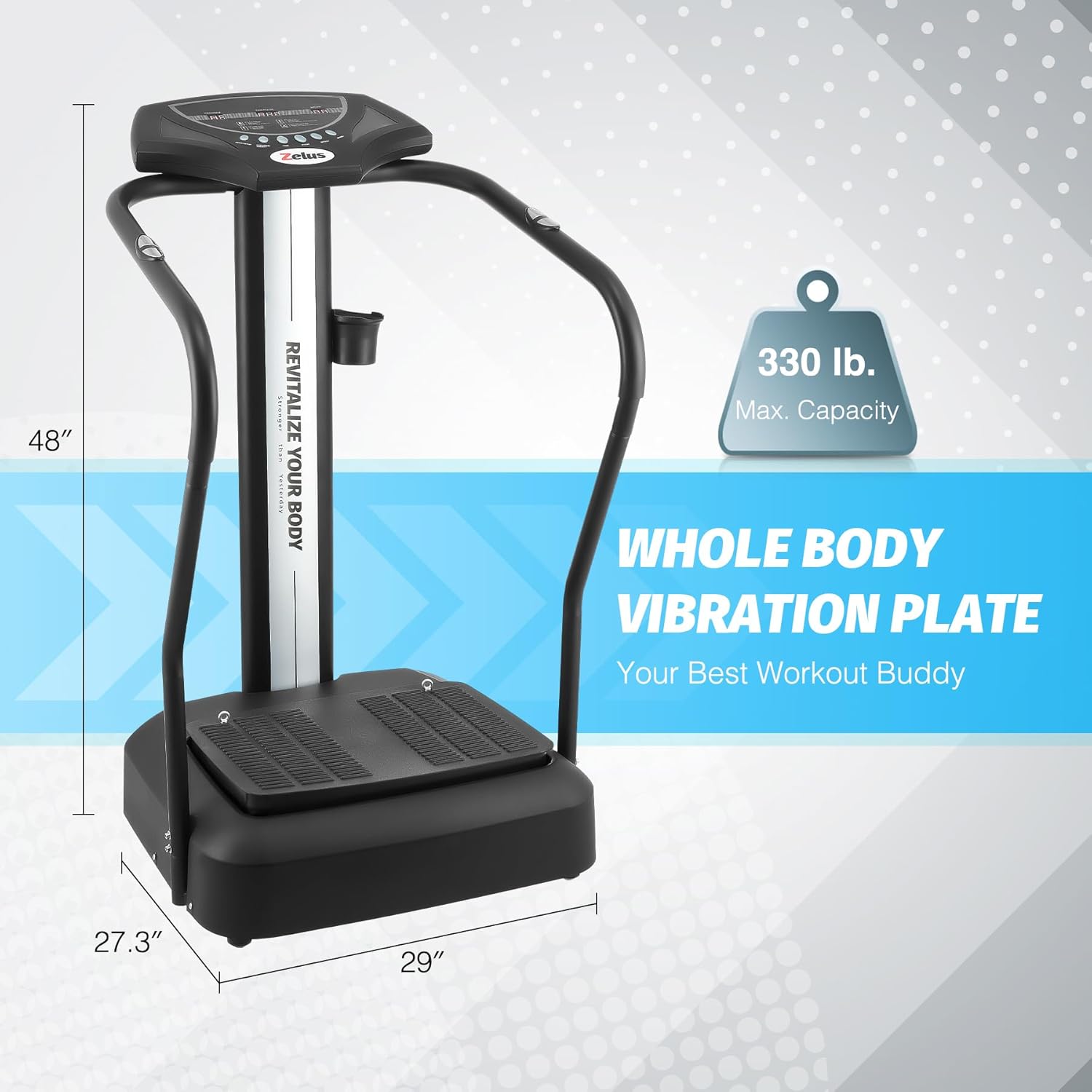 - Safe & Durable: Constructed from premium quality steel. our vibration plate exercise machine supports up to 330 pounds through years of service. The foam-wrapped handrails improve your comfort and grip. while the rubber feet provide secure footing without damage to your home's floors